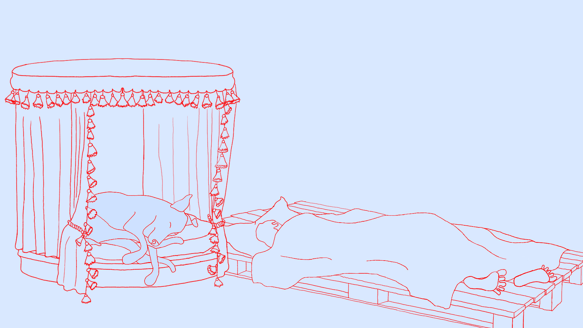 Hilda is a dog who has a firm belief that she is the master of her human. The story describes everyday activities through the interpretation of Hilda. As the best master in the world, Hilda determines the start of each day, their exercise routine, menu, daily walks and social life. Her pet treats Hilda like a goddess who must be preserved.
