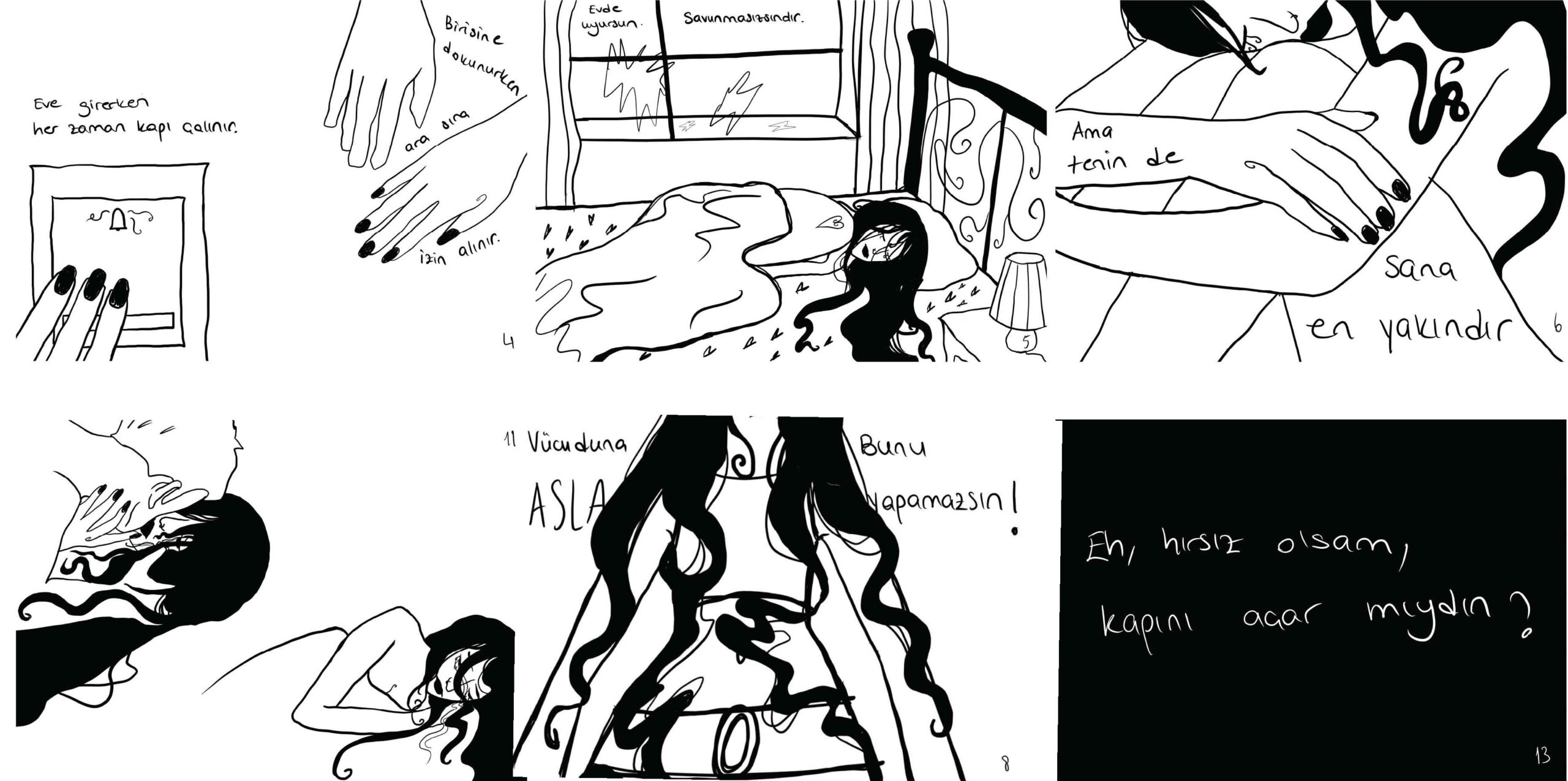Karakterim bedeninden çokça kopmuş birisidir. İnsanlar onun ‘hayır’larından hep bir ‘evet’ yapmışlardır. Kendi seçtiğini düşündüğü ilişkilerde ve temaslarda bile canı yanar. Karakterimin bedenine zarar geldikçe evi de gitgide dağılır, eşyalar kırılmaya başlar. Fakat karakterim bunların hiçbirisini düzeltmez/ düzeltemez. Ve kırık eşyaların arasında hiçbir şey yokmuş gibi gündelik hayatını yaşamaya devam eder. Bilirki bedenindeki acıyı kolay kolay dindiremeyecektir. Acısını düşünürken yaşadıklarını diyaloglara benzetir. Bu şekilde çözüm bulmaya çalışır, bedenine geri dönmek ister. İzin verdiğini düşündüğü şeyler bir bir ortaya çıkmaktadır.